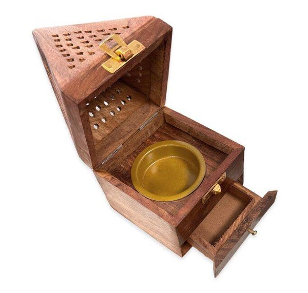 Porte Encens Pyramide Coffret Tiroir en Bois de Sheesham 16cm